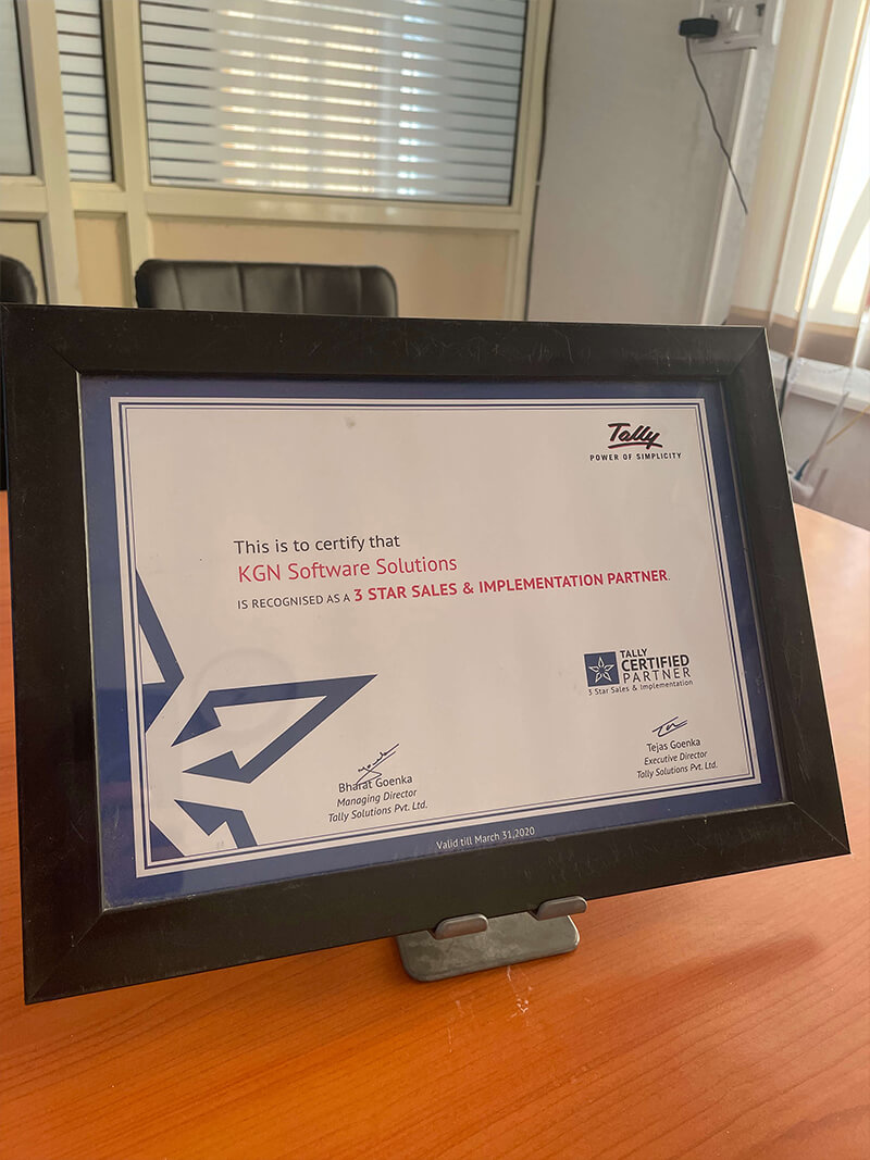 At KGN Software Solutions, we are proud to be a Tally Three-Star Certified Partner serving the Delhi NCR region since 2012. As one of the fastest-growing Tally solutions providers, our team of highly trained professionals and dedicated Business Development Managers (BDMs) is committed to supporting your staff with tailored solutions that align with your business needs.
